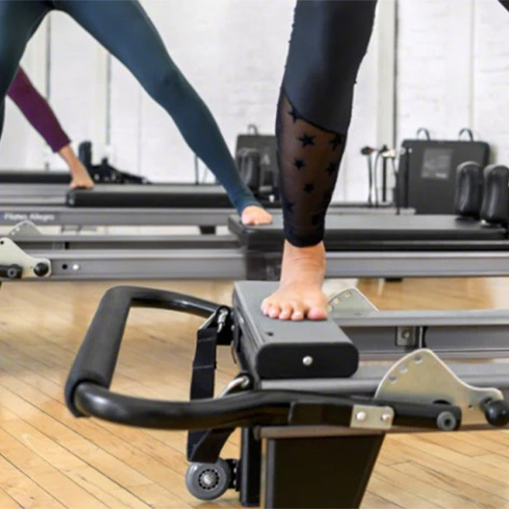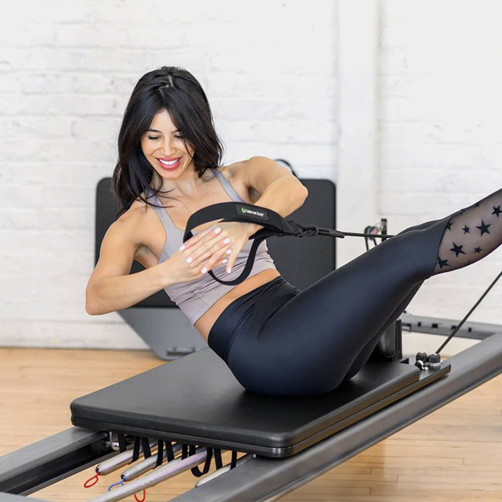 Crafted from durable aluminum alloy, this reformer features a smooth 8-wheel carriage system and 5 resistance springs for versatile workouts. Its adjustable footbar, non-slip platform, and quiet rope system ensure professional performance at home or in studios. The sleek black interior integrates transport wheels for easy storage.
